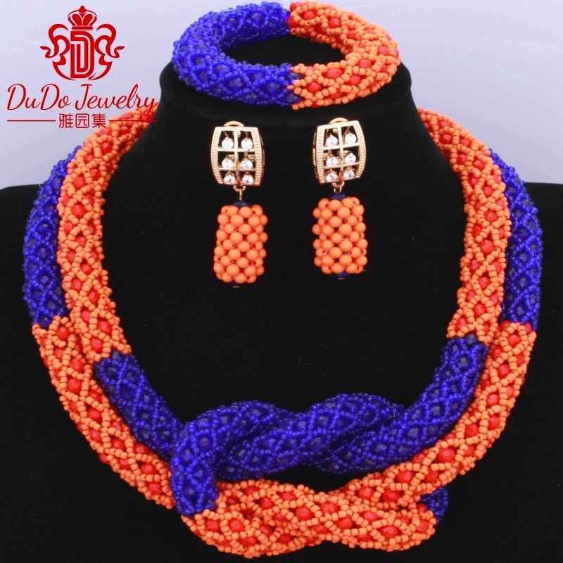 Azul Royal Laranja Conjunto De Joias De Moda Brincos De Cobre Africano Nigeriano Contas De Casamento Festa Nupcial Conjunto Colar De Contas Turco Set Of Beads Orange Jewelry Setsfashion Necklace Set Aliexpress